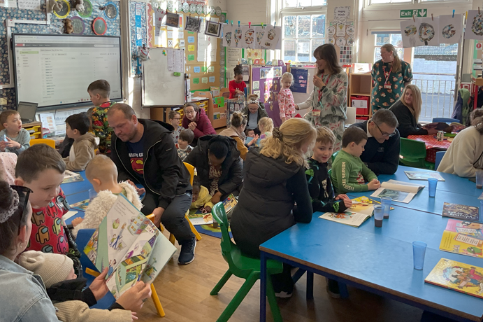 What a day the children have had. Their day started getting cosy with parents/carers and hot chocolates before we started our jobs! We were lucky to read 4 brand-new picture books from this year's picture book awards. The children built all the ingredients to make their very own story bags and bring them home to share with you. After lunch they were treated to Big Mouth Theatre who taught them some drama techniques. WHAT A FANTASTIC DAY! Please see the e-mail where we have set a reading challenge!